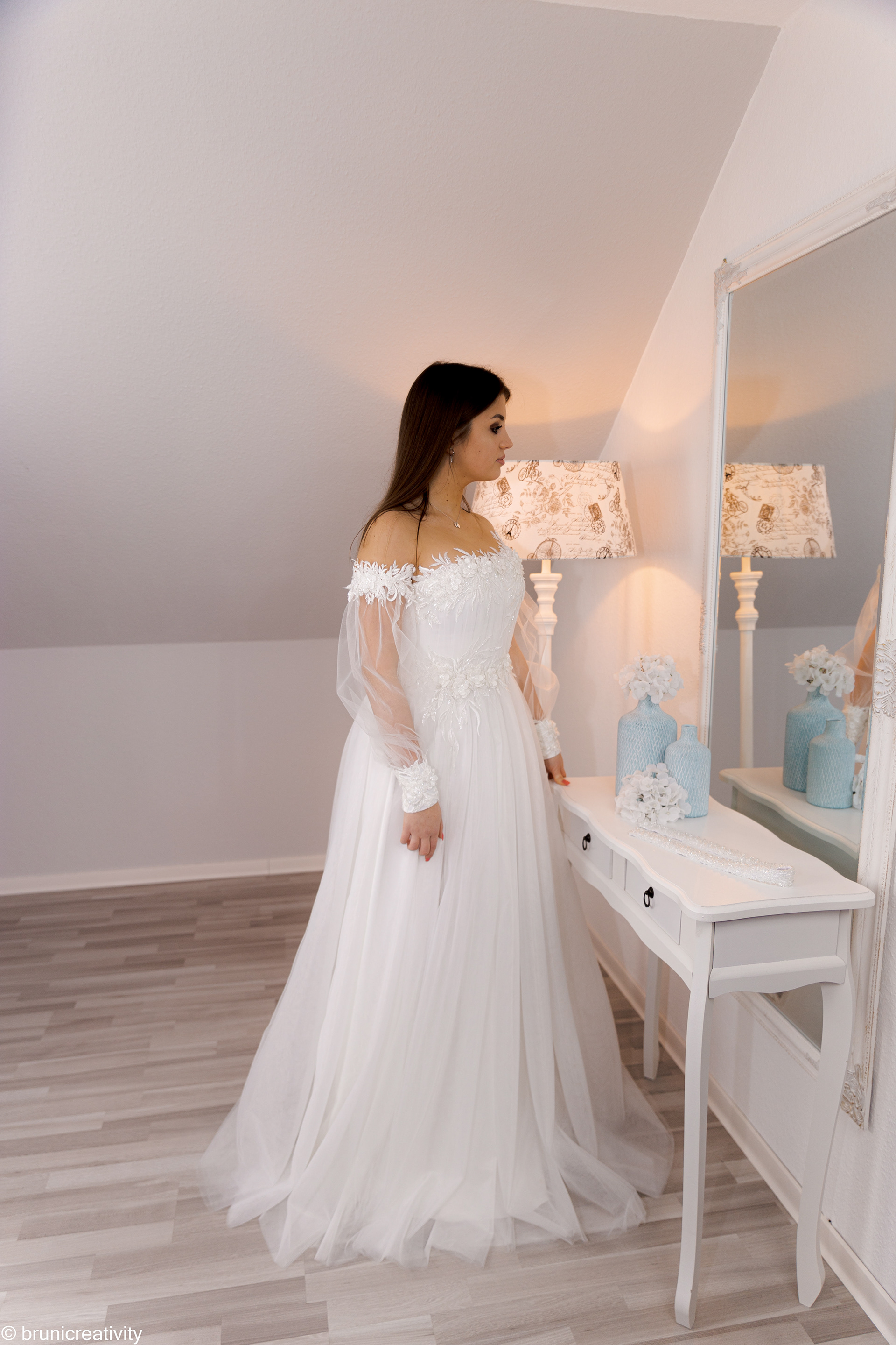 Romantisches Brautkleid mit extravaganten Ärmeln
